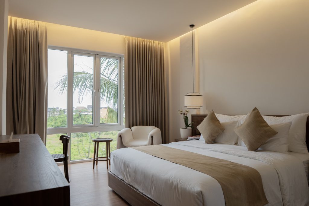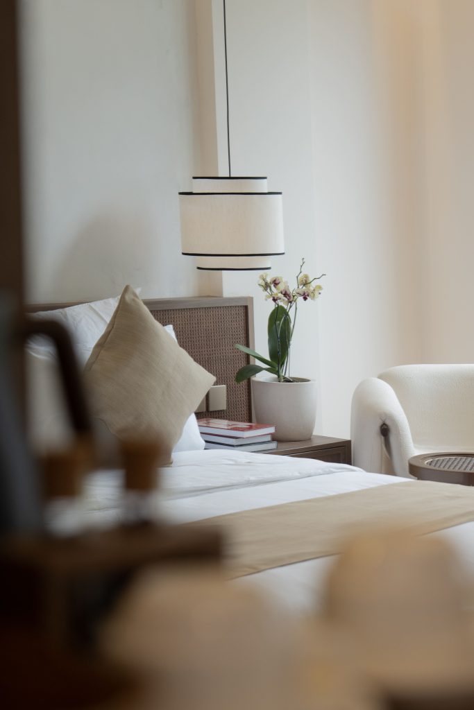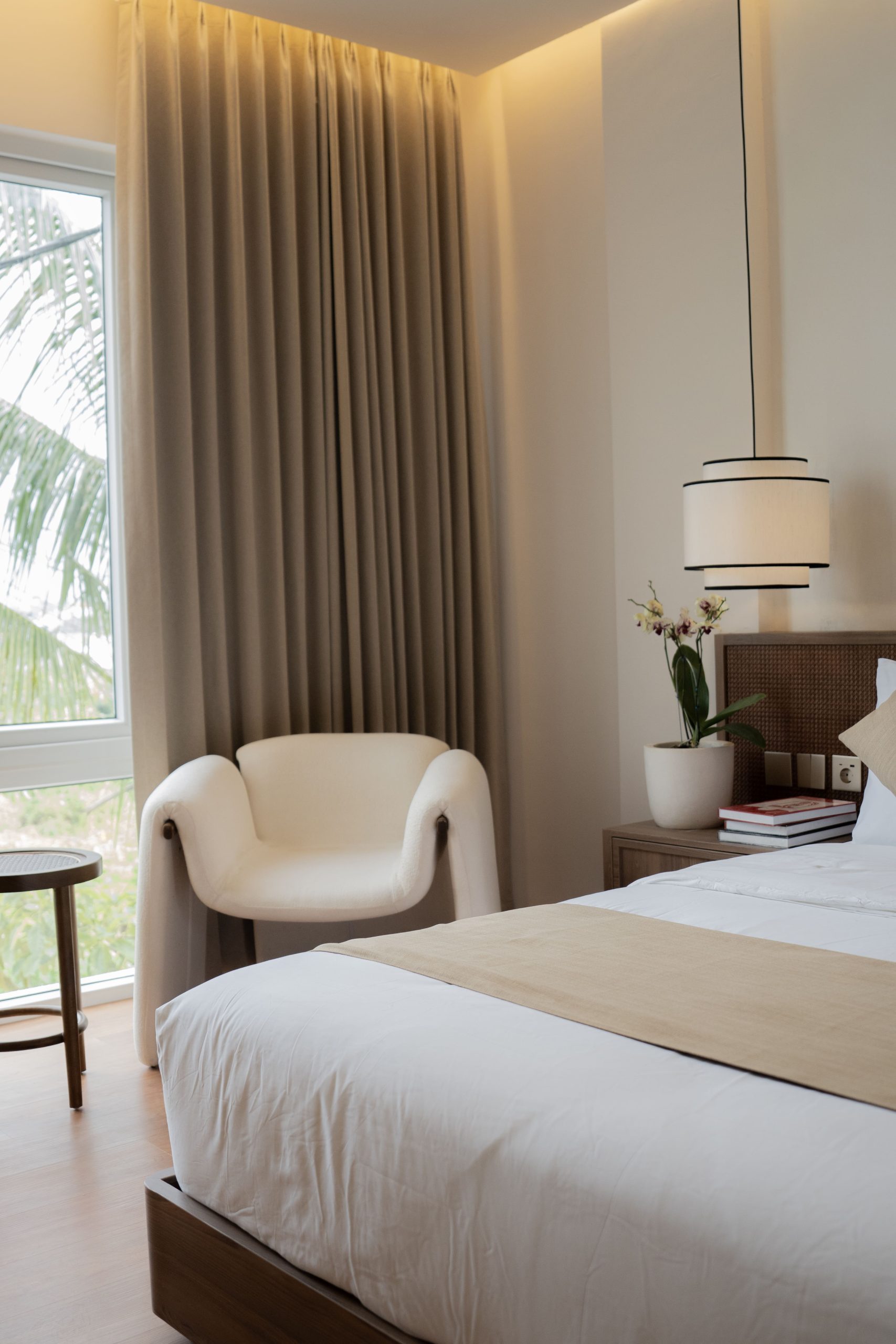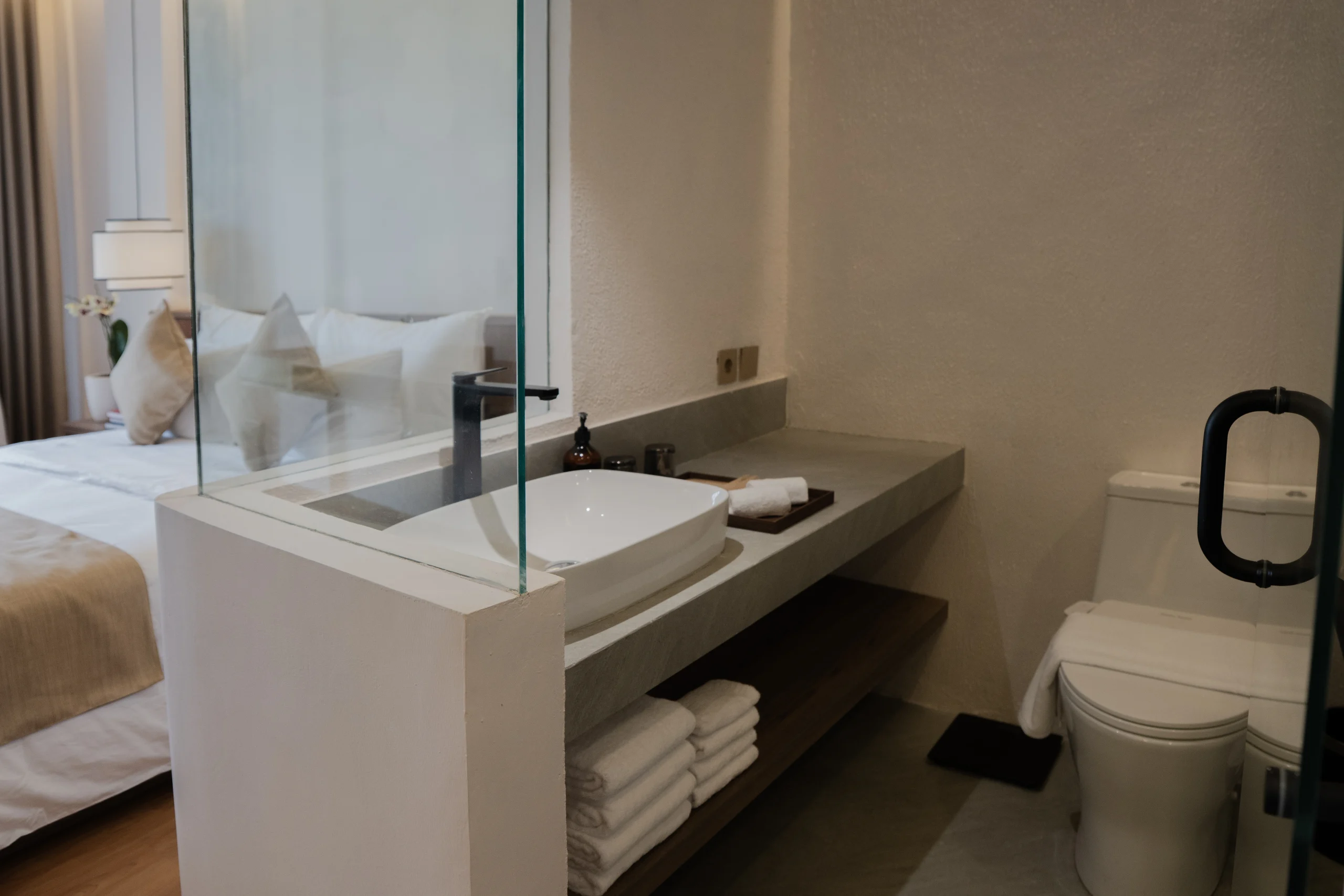 An elegant 40 sqm suite with private balcony and direct pool access, designed for couples seeking comfort and relaxation.