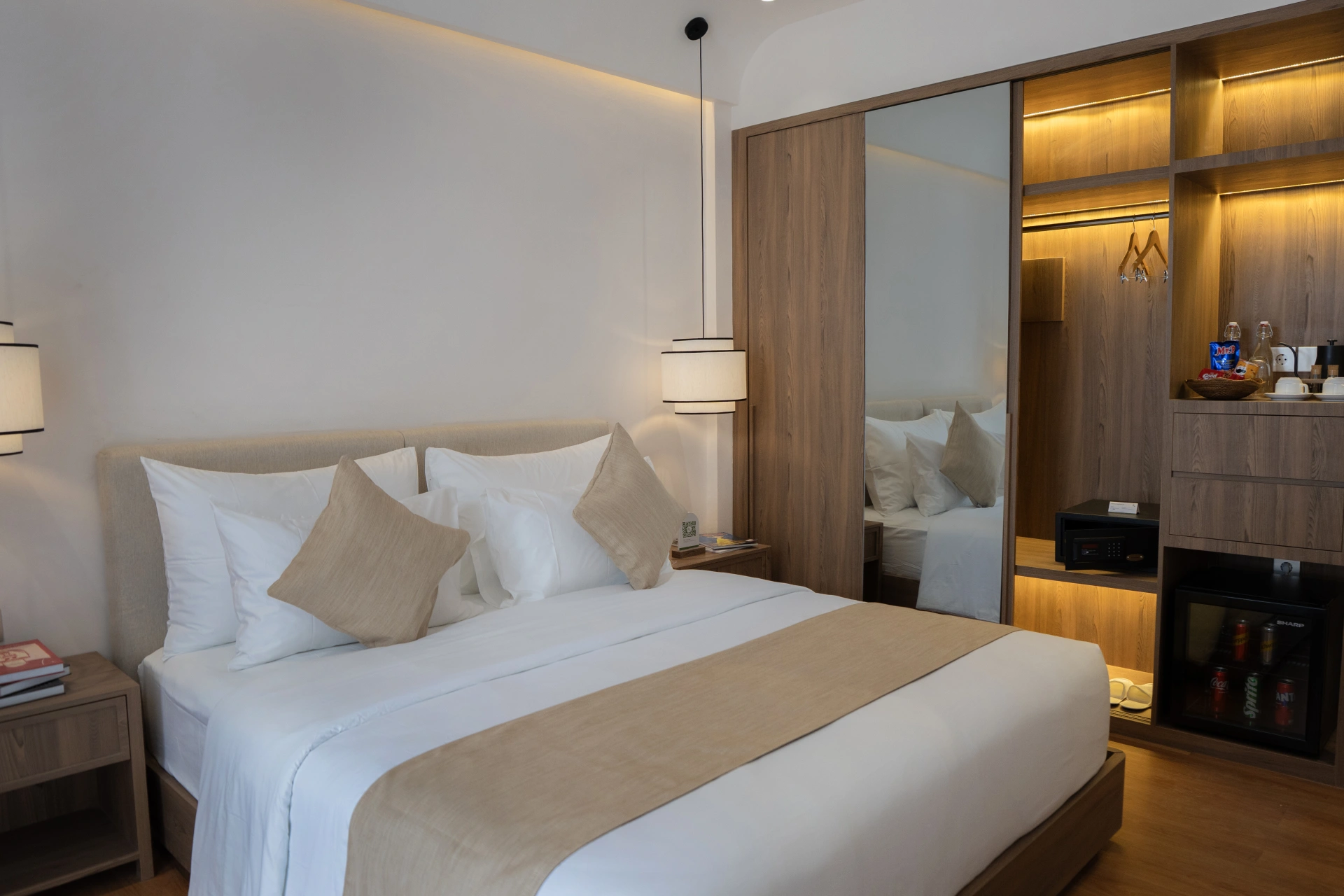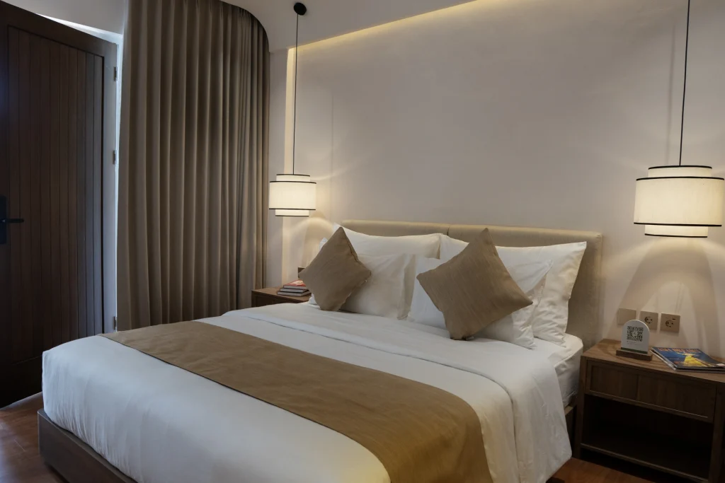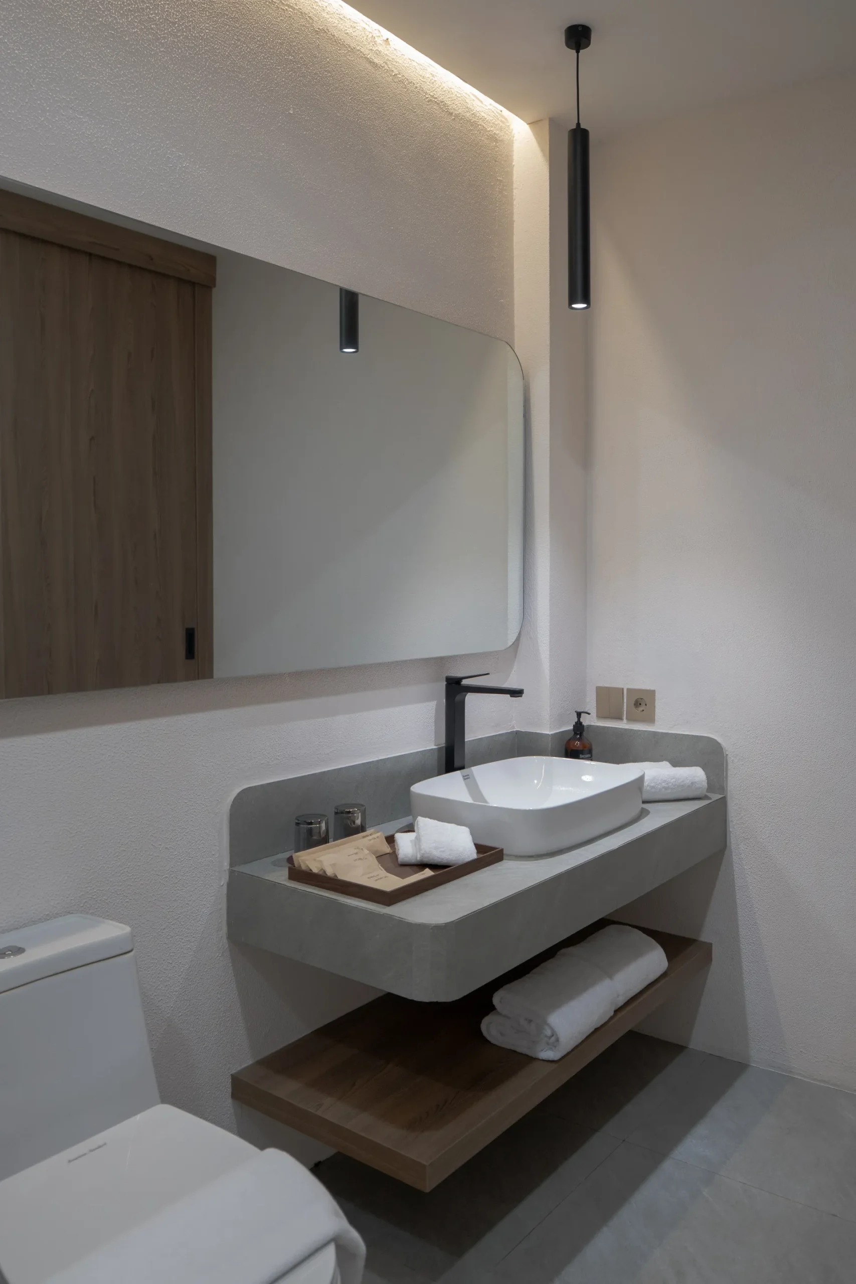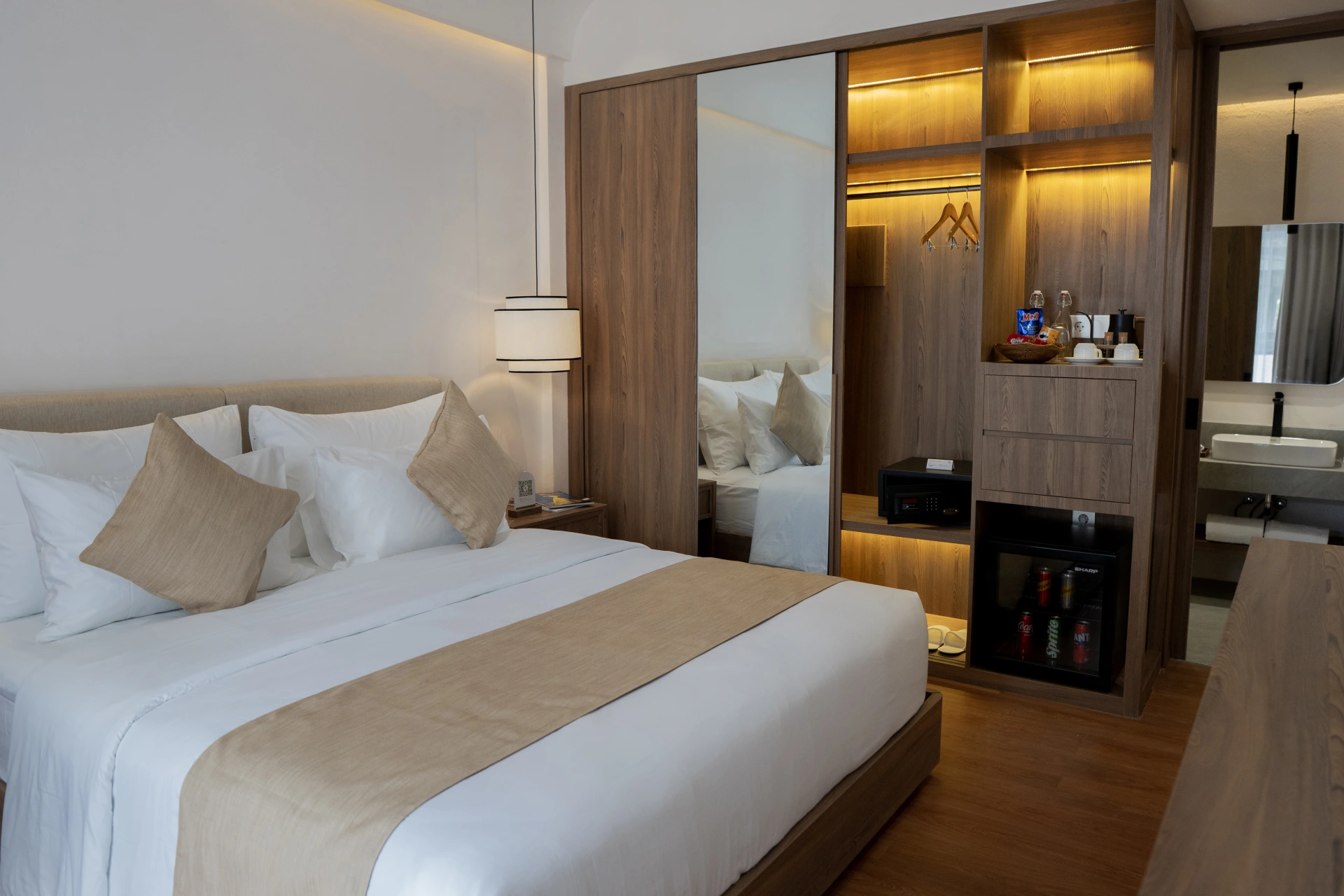 The Superior Suite offers a comfortable and modern space designed for relaxation within 40 sqm of well-appointed living. Ideal for couples or solo travelers, this room features one double bedroom, a 42” smart TV, high-speed WiFi, air conditioning, and laundry service. Guests can enjoy direct pool access, creating a refreshing and convenient stay experience in a calm and welcoming atmosphere.